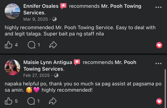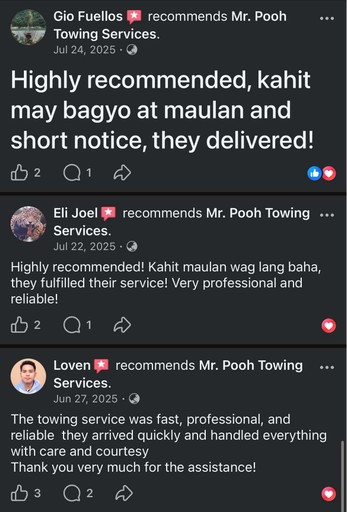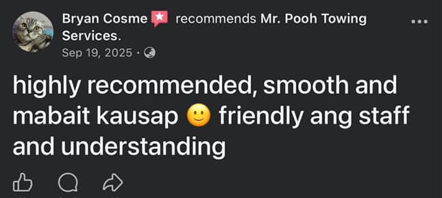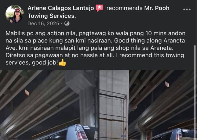 Response time depends on your location and traffic conditions in Metro Manila, but we prioritize fast dispatch for emergency towing and roadside assistance.